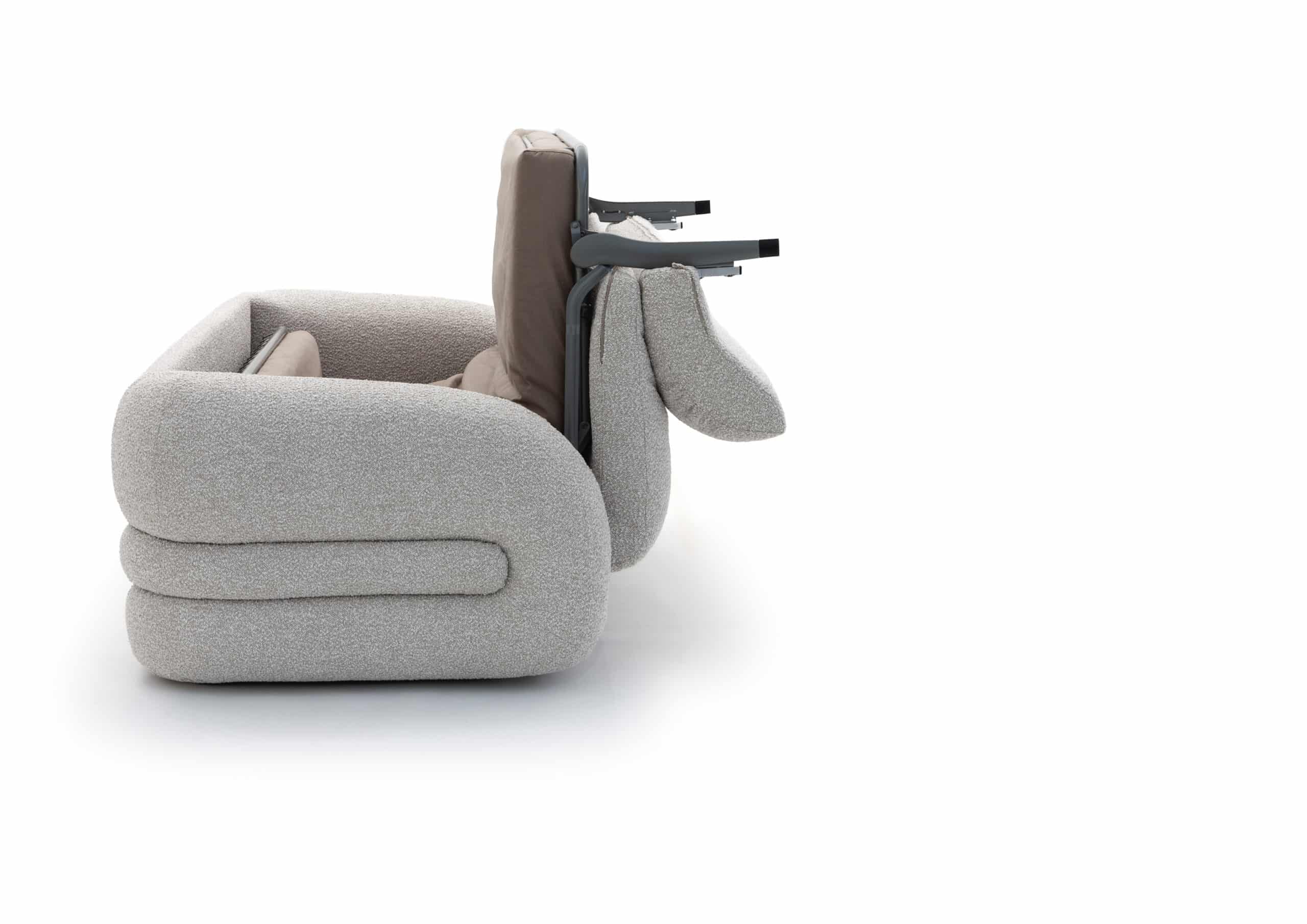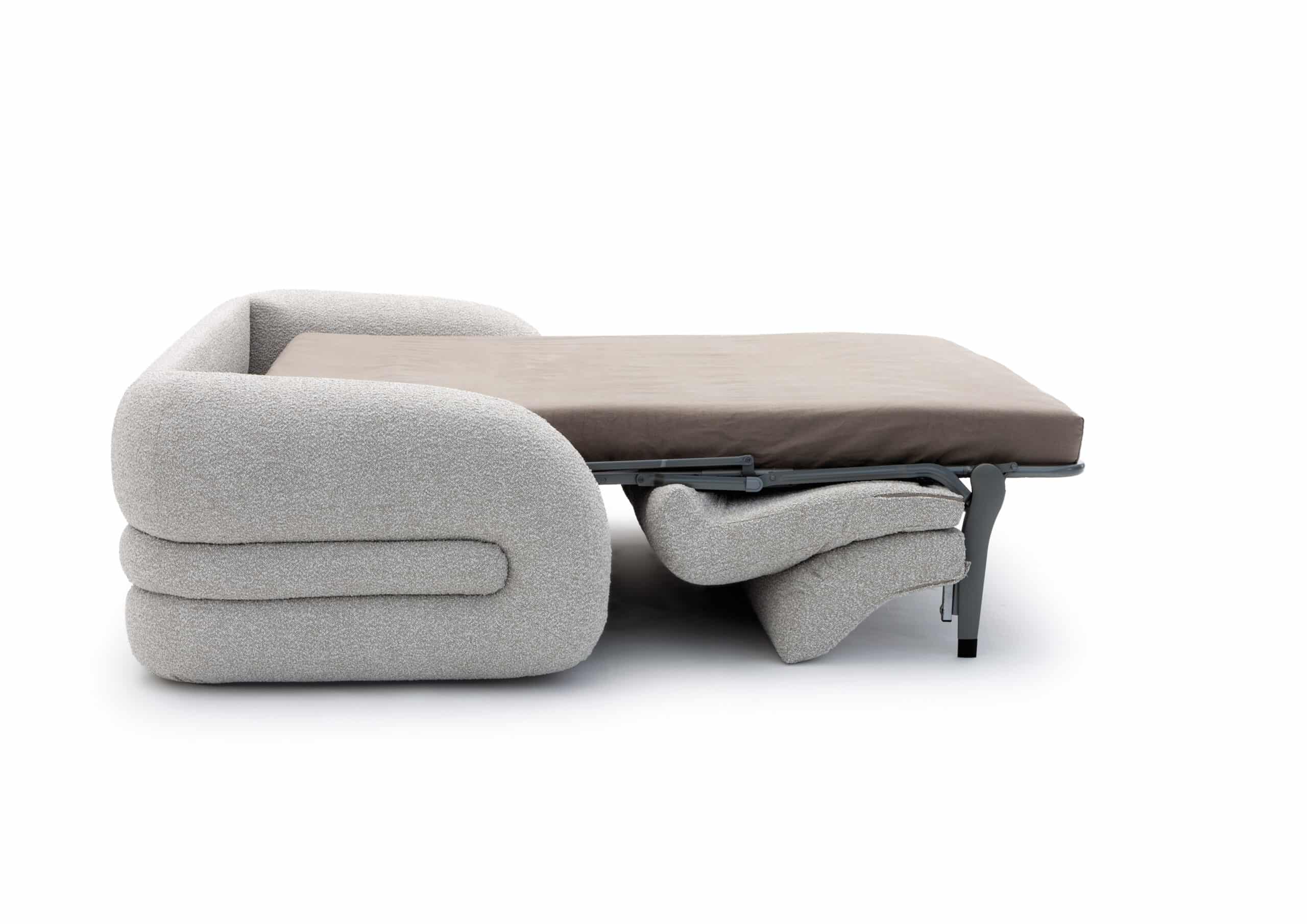 Boa, the new sofa designed by Giulio Manzoni, is an invitation to relax. Its soft, rounded shapes evoke comfort and visual harmony, creating a welcoming space to unwind. The sofa supports the body both while sitting and resting, transforming when needed into a practical bed with a 16 cm mattress, designed to make your moments of relaxation, and your dreams, even more enjoyable.