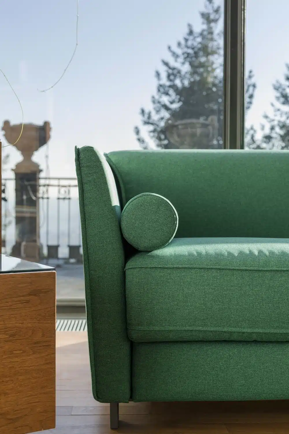 An attractive design of great character, which mentions with a light touch classic suggestions with small roller cushions next to high armrests and matt burnished metal feet, without betraying its vocation as an essential and functional companion in any furnishing context, thanks to the comfortable bed perfectly concealed inside. Matrix, Giulio Manzoni (2022) was born to last over time, not only because of its simple and graceful style, but also because of the choice of extremely durable materials. The structure is made of wood, the mechanism is made of electro-welded steel mesh with polyurethane foam mattress or with springs. Covering is completely removable and available in various colours.