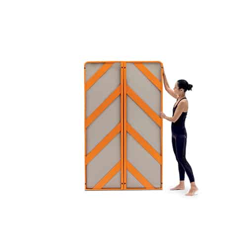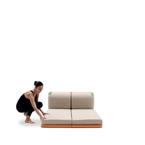 The unconventional, simple yet unexpected and courageous aesthetics of Matali Crasset (2022) affirms itself in a recognizable way in this multifunctional project. Twin is a pair of twin beds that interprets new ways of living the home with great functionality of use in the transformation from seat to bed with bedside table, and with attention to flexibility and freedom of composition. A perfect balance between the firm and radical line of the design and a soft, versatile, rich in character welcome. The structure is in orange painted metal, the removable cover is in coloured lycra.