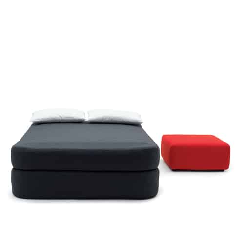 The Zoom pouf widens up the space according to Giulio Manzoni’s (2009) style: it’s an absolutely versatile small size seat, but the resin and polyurethane foam body chassis includes a real double bed.