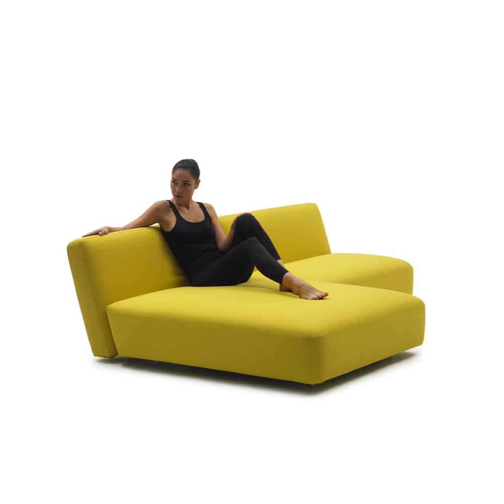 Slalom è un divano letto ideato dal designer Giulio Manzoni. Si scompone e ricompone come le tessere del domino: con pochi e semplici gesti si trasforma da comodo divano con penisola a grande letto con testiera e pediera.